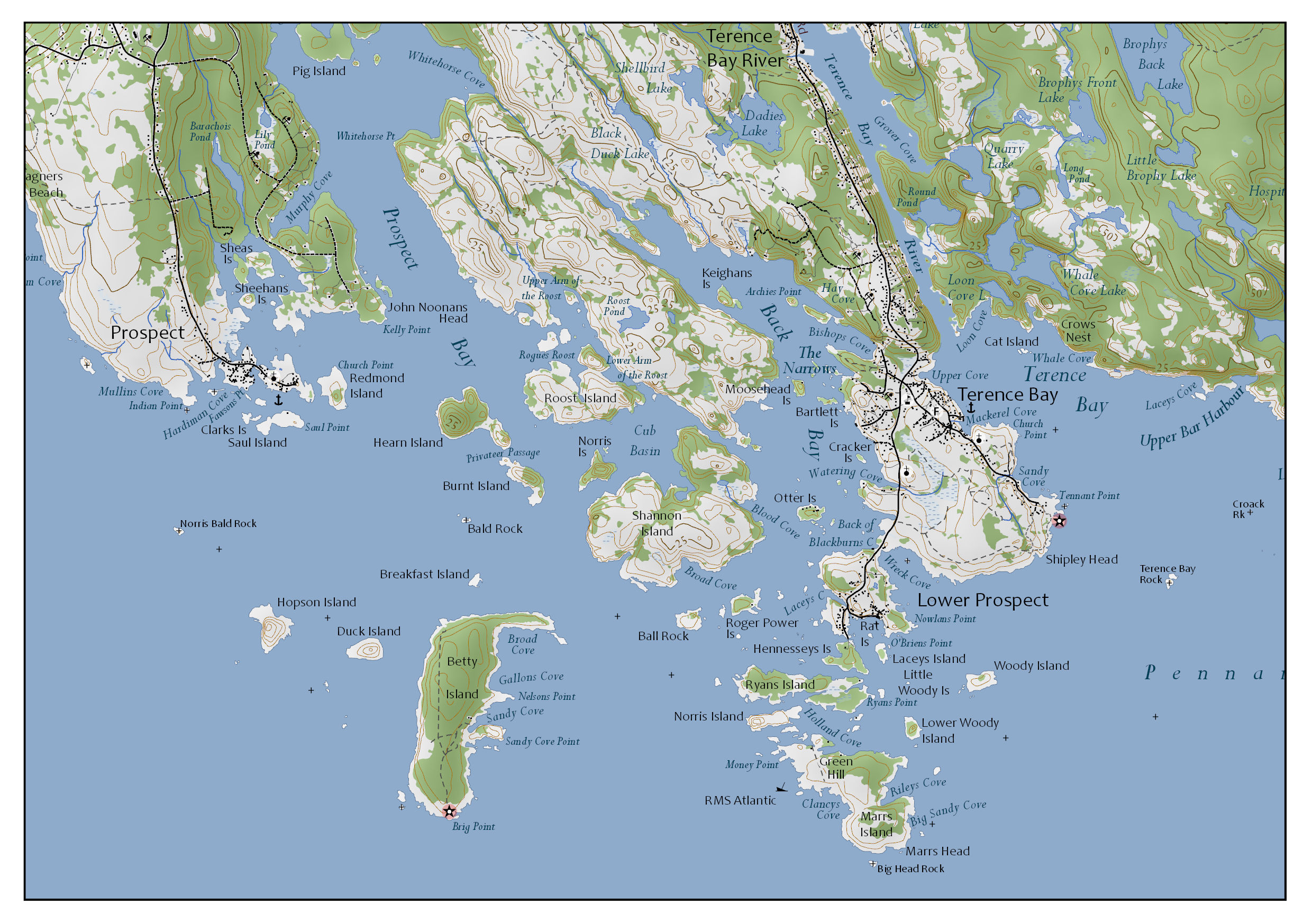 The shaded relief provided by the Department of Lands and Forestry of Nova Scotia, based on the 25 metres DEM of the Province of Nova Scotia, was clipped to the study area and its surface smoothed using the geoprocessing tool Focal Statistics.